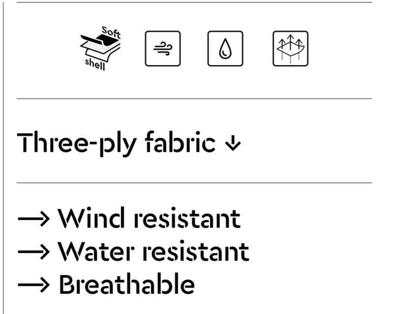 Soft shell with fleece lining and TPU membrane. Fabric base. 100% polyester / 320 gsm